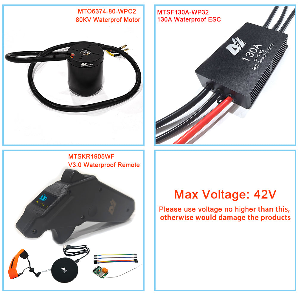 New Marine E Foil Kit 42V Waterproof 6374 80KV Motor + 130A ESC + MTSKR1905WF Waterproof Remote